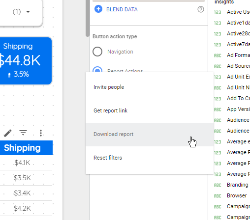 You’ve just created your first download button, a very useful feature to make the experience better for your users. They’ll just have to click on it, select options, and they’ll be able to download the report without having to think too much about it:
