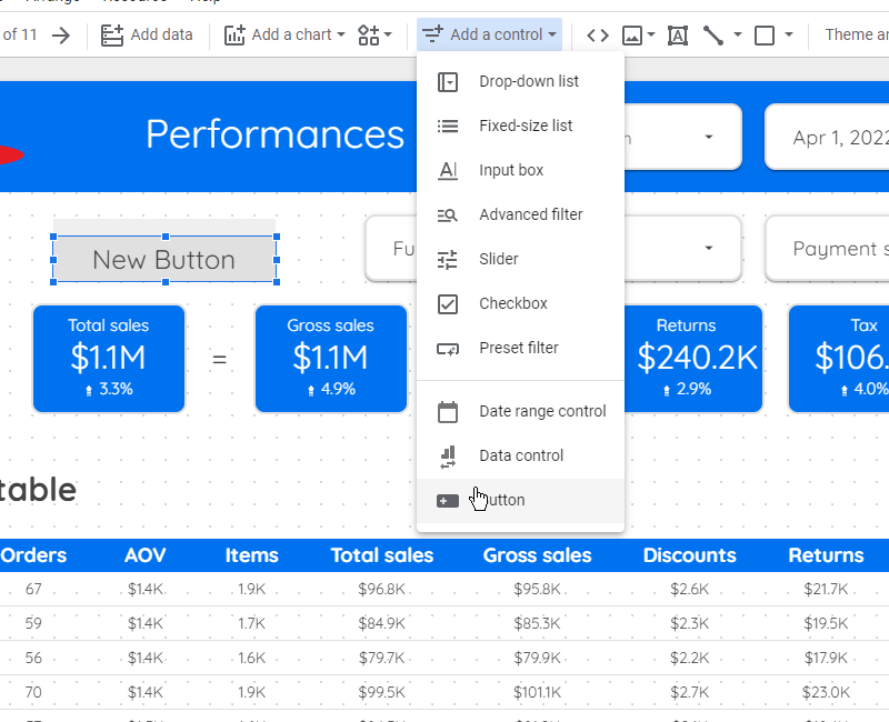 With the last release, we now have the option to add a button directly to any Looker Studio page.
