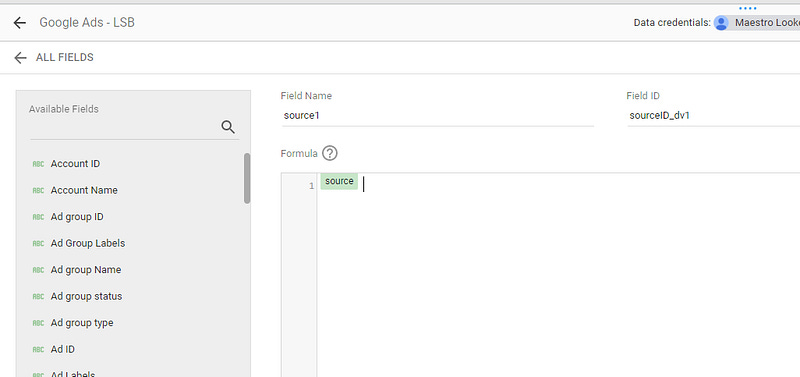 For the google data source, we’ll add the same field, this time inputting ‘google’