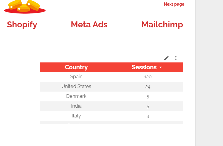 Now, let’s say you’ve got a table that gives you sessions by country from a GA4 property, like this one: