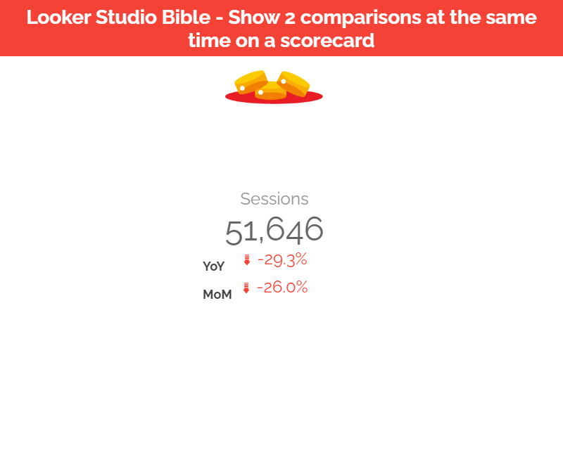 In this quick article, we’ve reviewed how to show two comparisons at the same time on a scorecard in Looker Studio.
