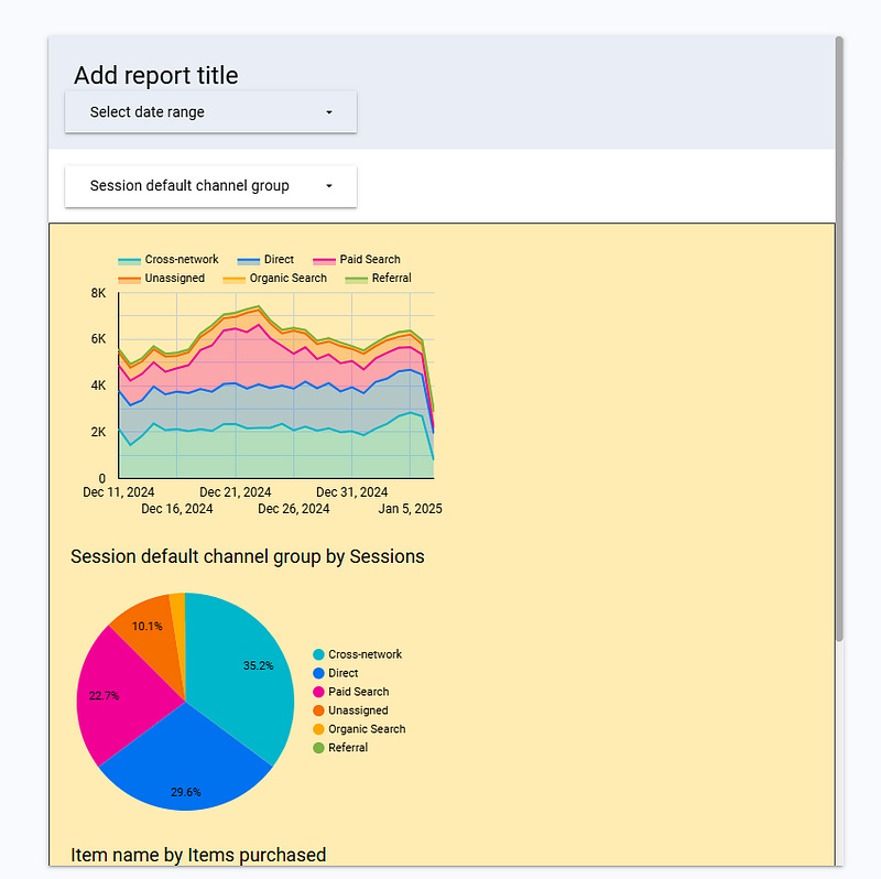 Last but not least, there is something inherently different to Standard reports: you cannot just create text boxes, controls or charts and drop them where you want. They have to fit within pre-created sections. It removes some design flexibity sure, but it ensures a smooth experience when switching to phones and tablets view (and in reality that’s pretty cool, as you won’t have to worry too much about this part anymore, Looker Studio takes care of the alignment for you ^^).